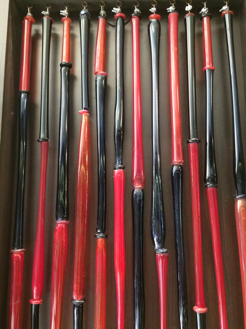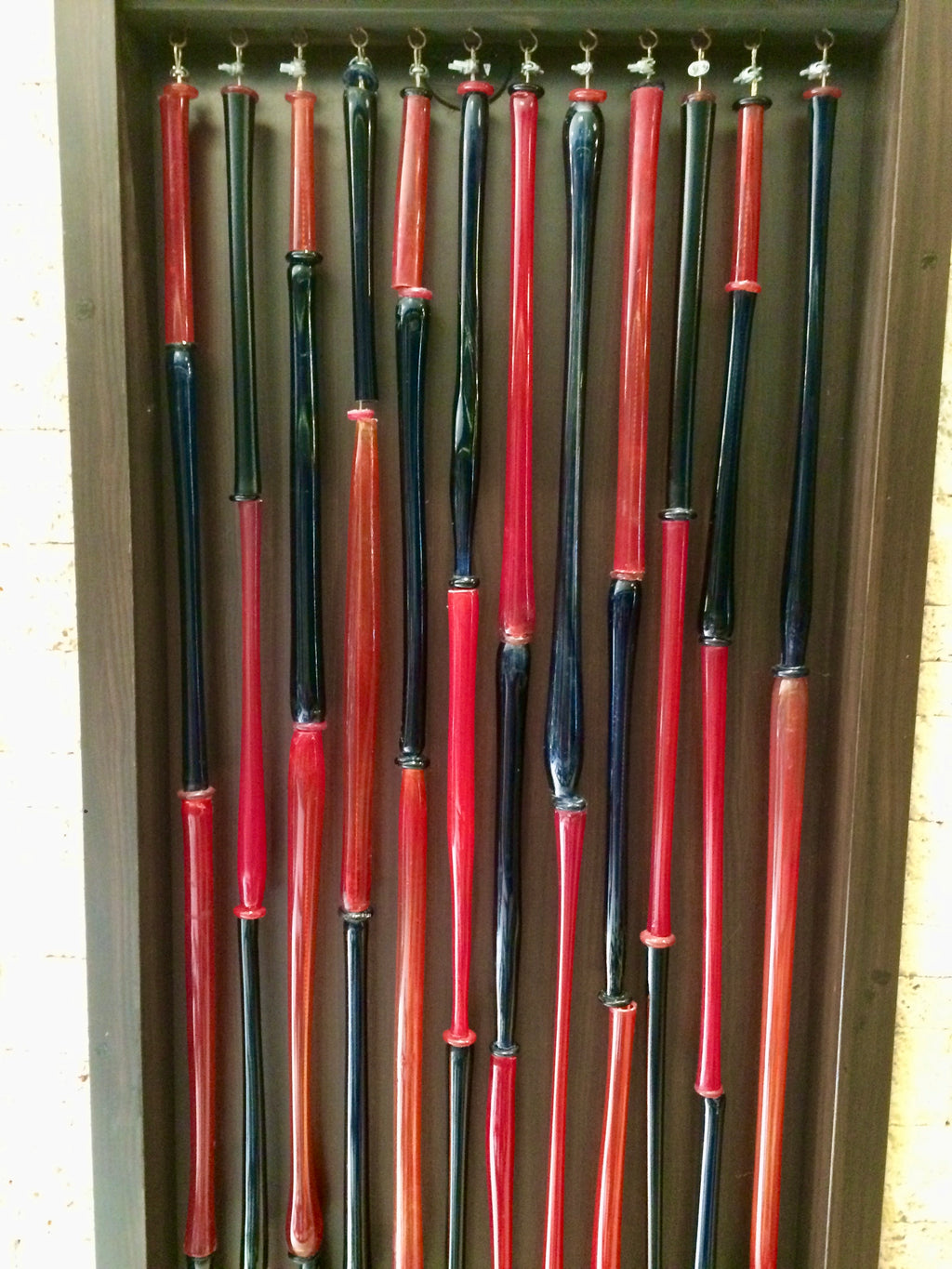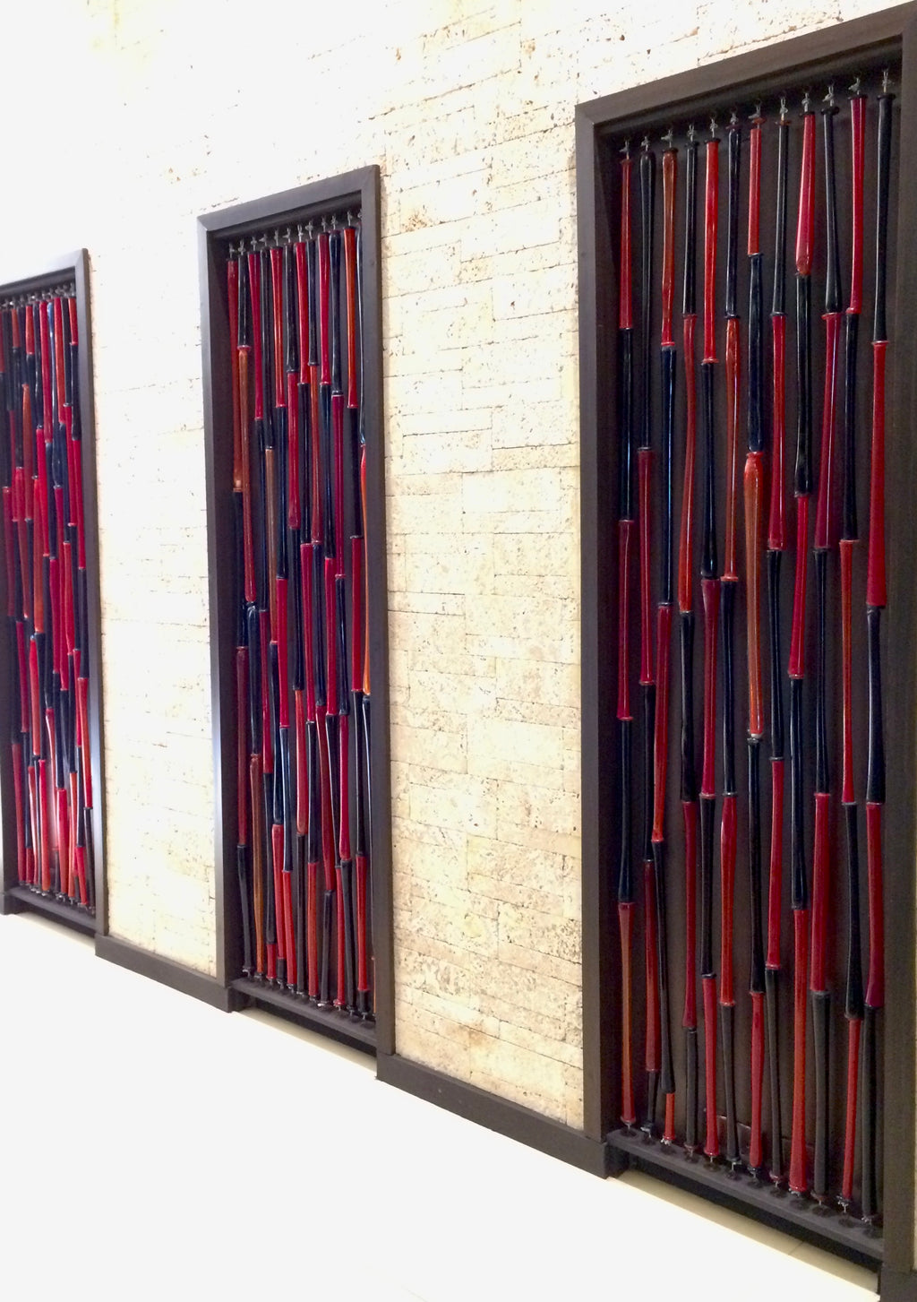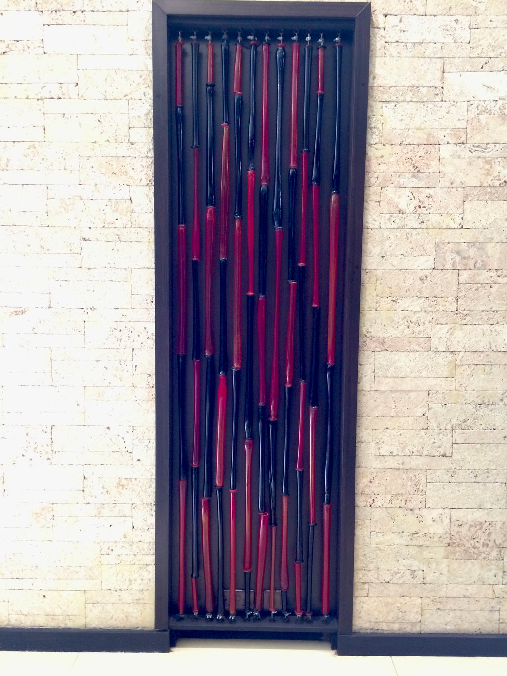 A custom commission for three recesses in a wall of the Ngong Hotel in Nairobi. The long tubes were mouth blown and spaced with our regular beads.