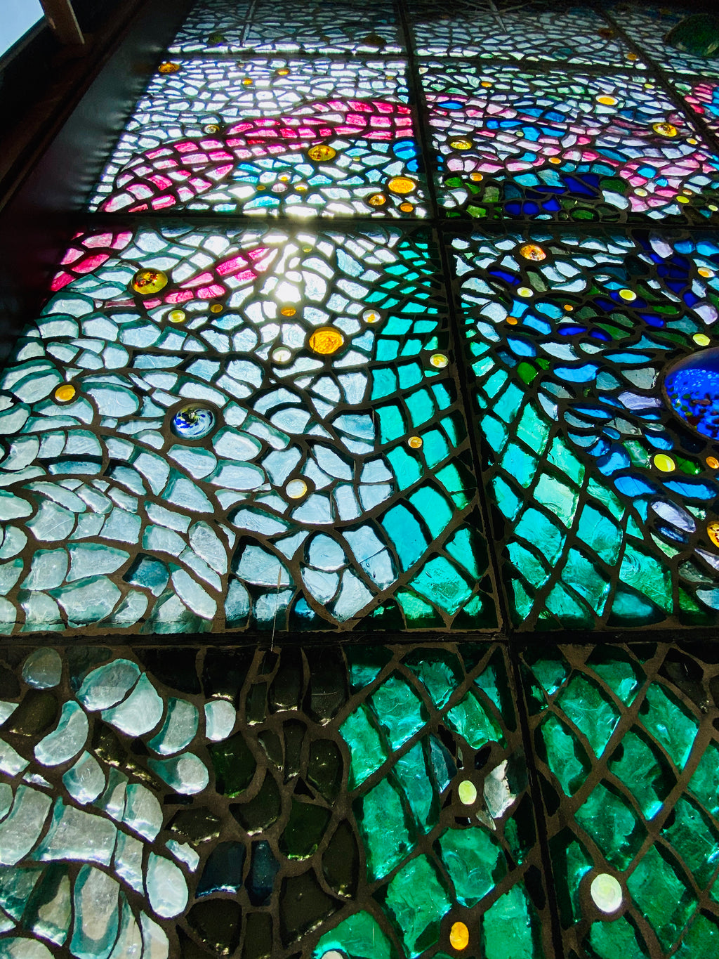 Dalle de Verre is used by Kitengela Hot Glass to create tough, vibrant window panels & furniture.