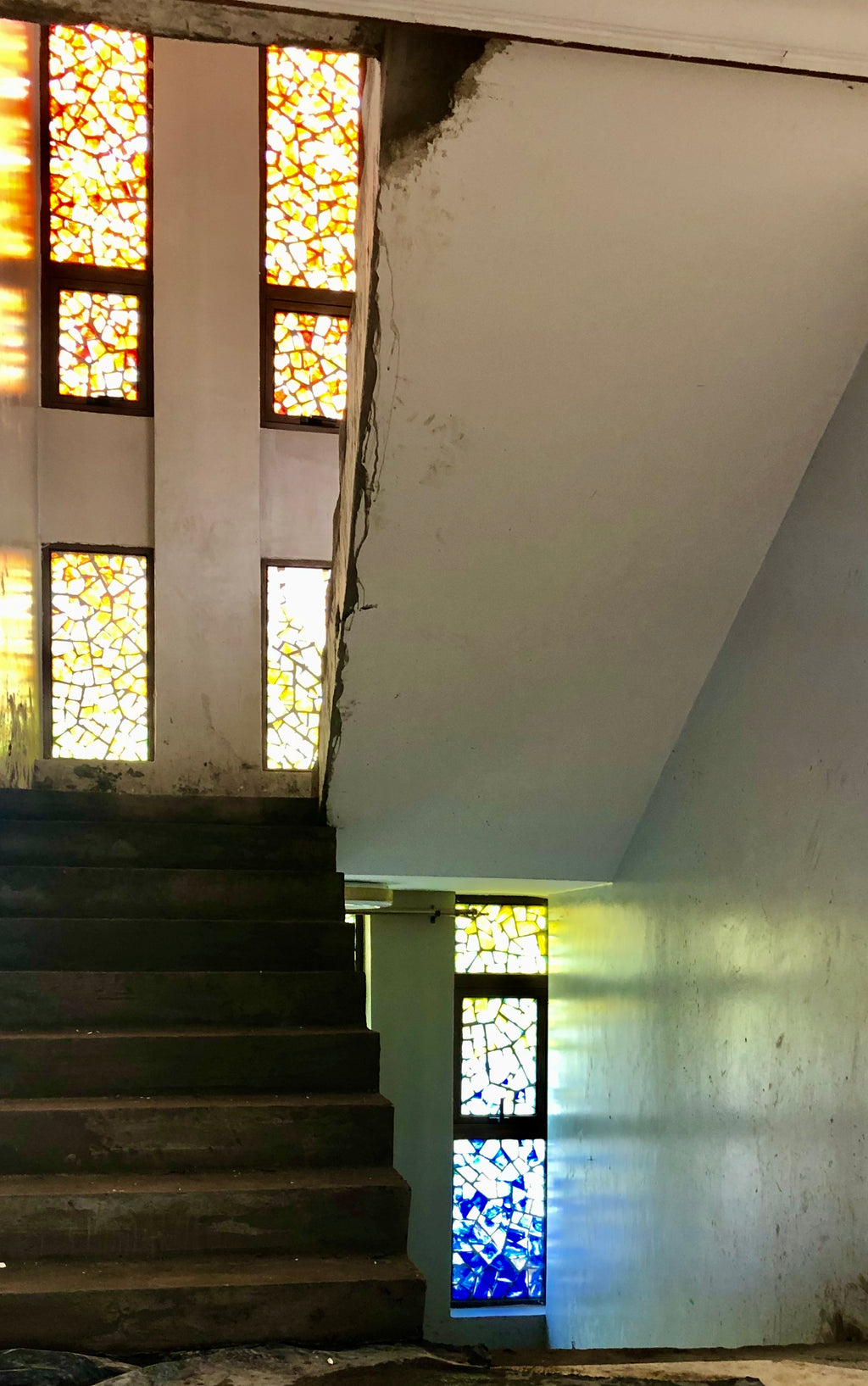 A French technique using thick cast blocks of glass in a cement & steel matrix. Dalle de Verre is used by Kitengela Hot Glass to create tough, vibrant window panels & furniture.