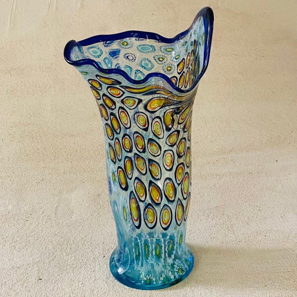 Blown glass - vase 40cm 'Peacock' murrine by Karani