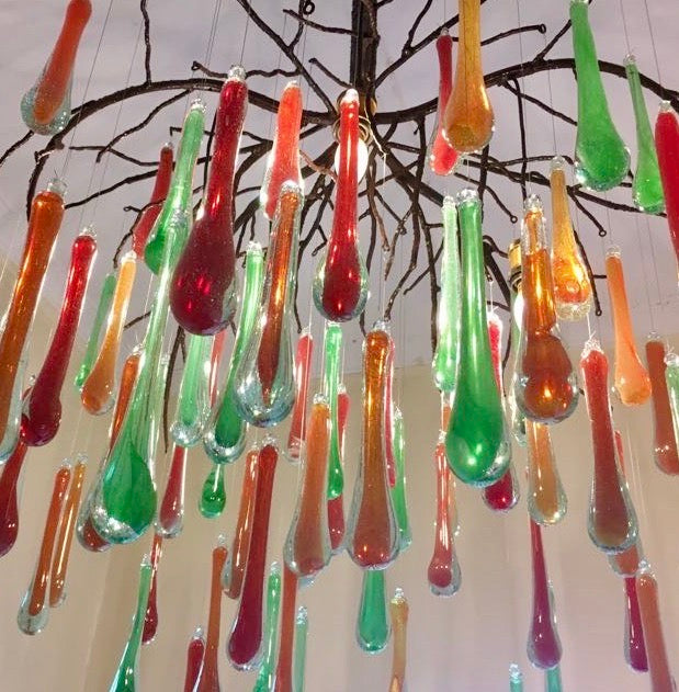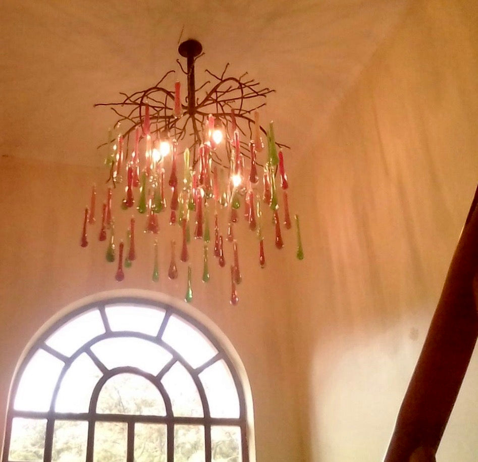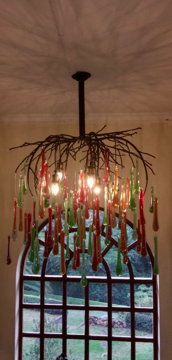 Made for a Muthaiga client. Bare bulbs to try not to detract from the drop effect, from a wrought iron branch.