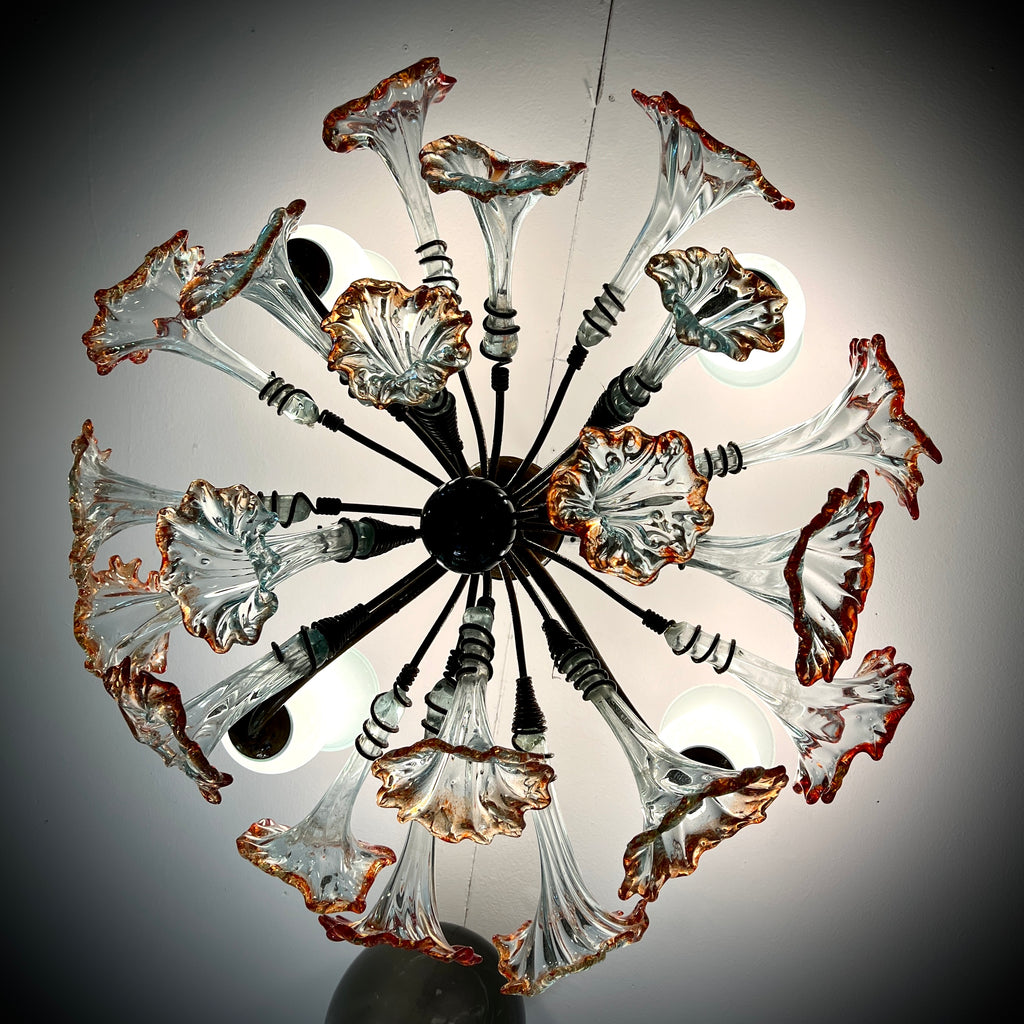 Chandelier 'Kitengela Classic' 80cm dia, 4 light cups, 16 red rim flowers