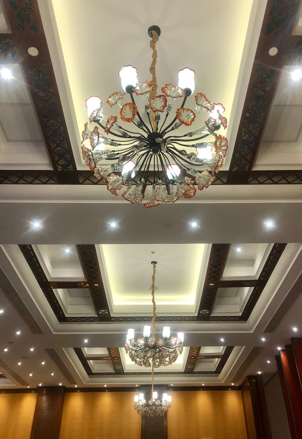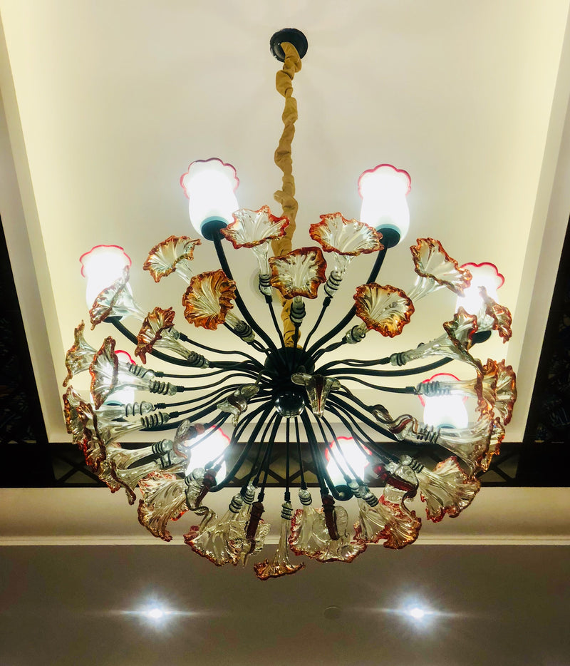 Chandelier 'Kitengela Classic' 1.2m dia, 8 light cups, red rim flowers
