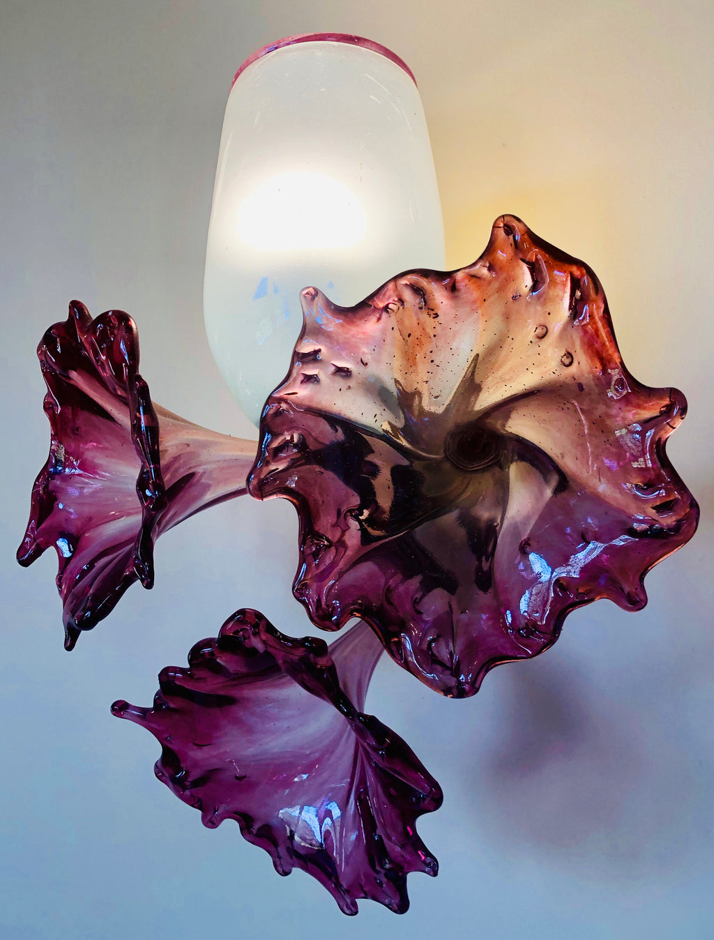 One of our signature styles adjusted for a clients country home near Mount Kenya. Using our homegrown technology of springs on the flowers, these dismantle for easy transport anywhere in the world. Matching wall brackets, naturally.