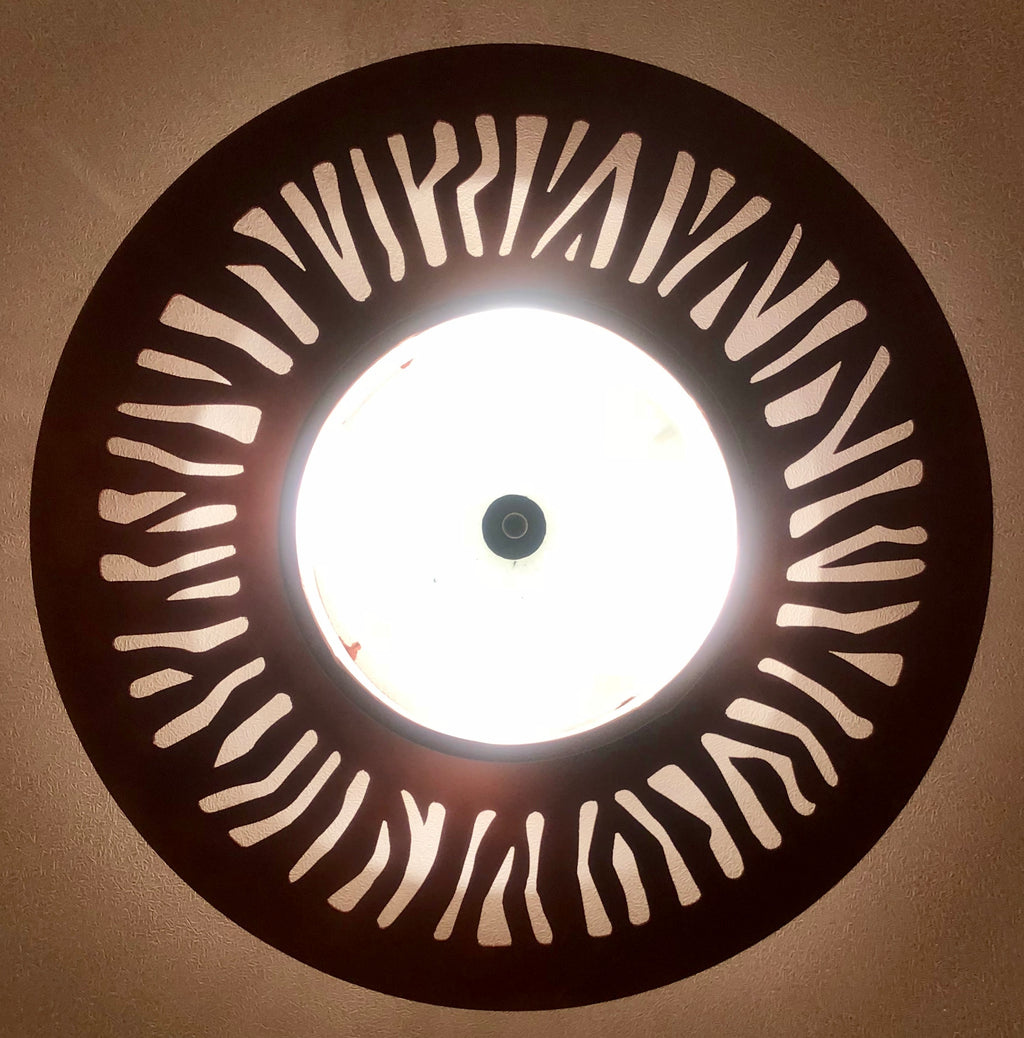 These ceiling lights with a zebra cut fringe were commissioned by the interior designer for the recent renovation of the Nairobi branch of Serena Hotel, as we were installing a new series of chandeliers for the new build.