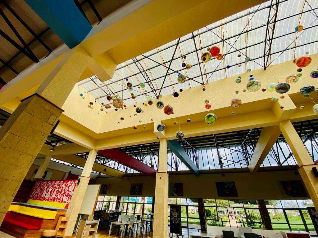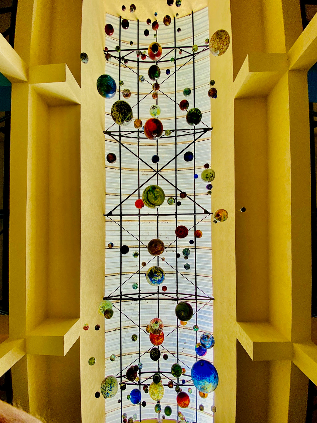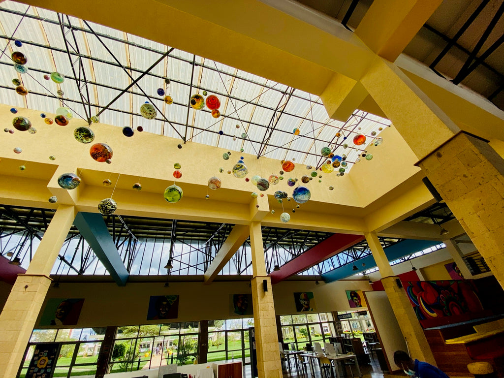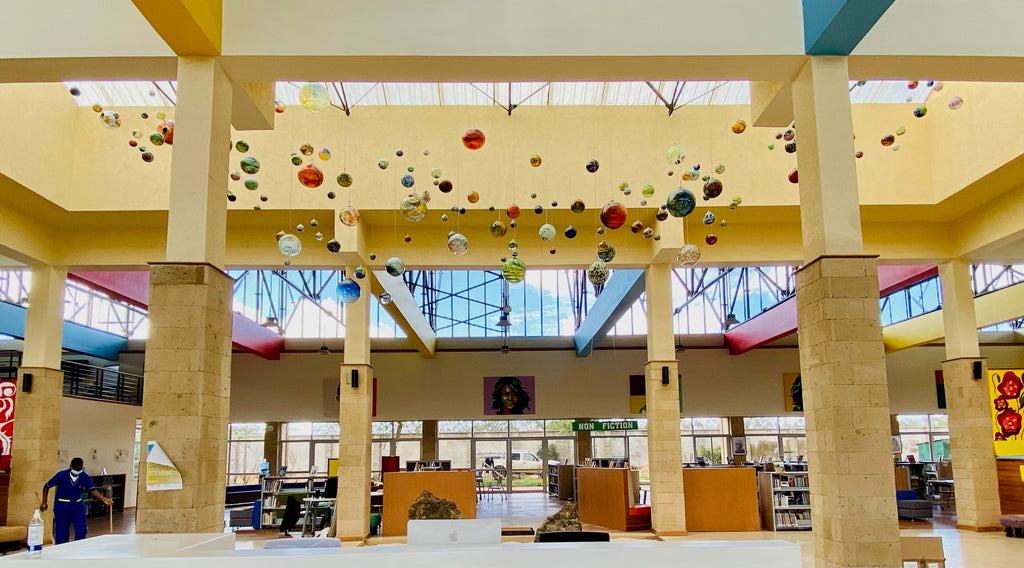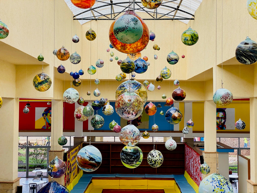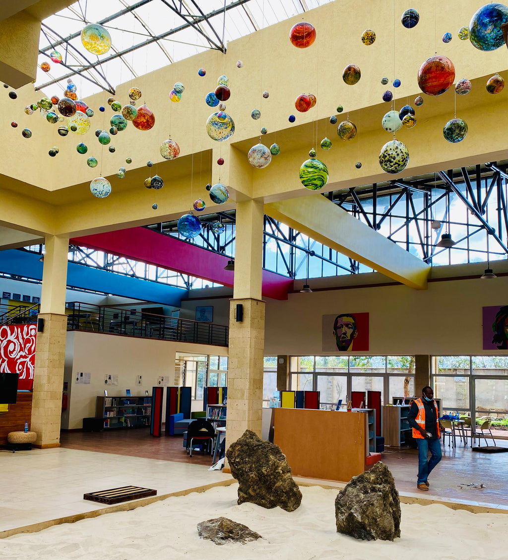 180 planets for the mPesa Foundation Academy forming a galaxy for their resource centre, to hang above a zen garden we also made - for students to step out of the data stream, take a minute to feel the sand between their toes and be in the moment.