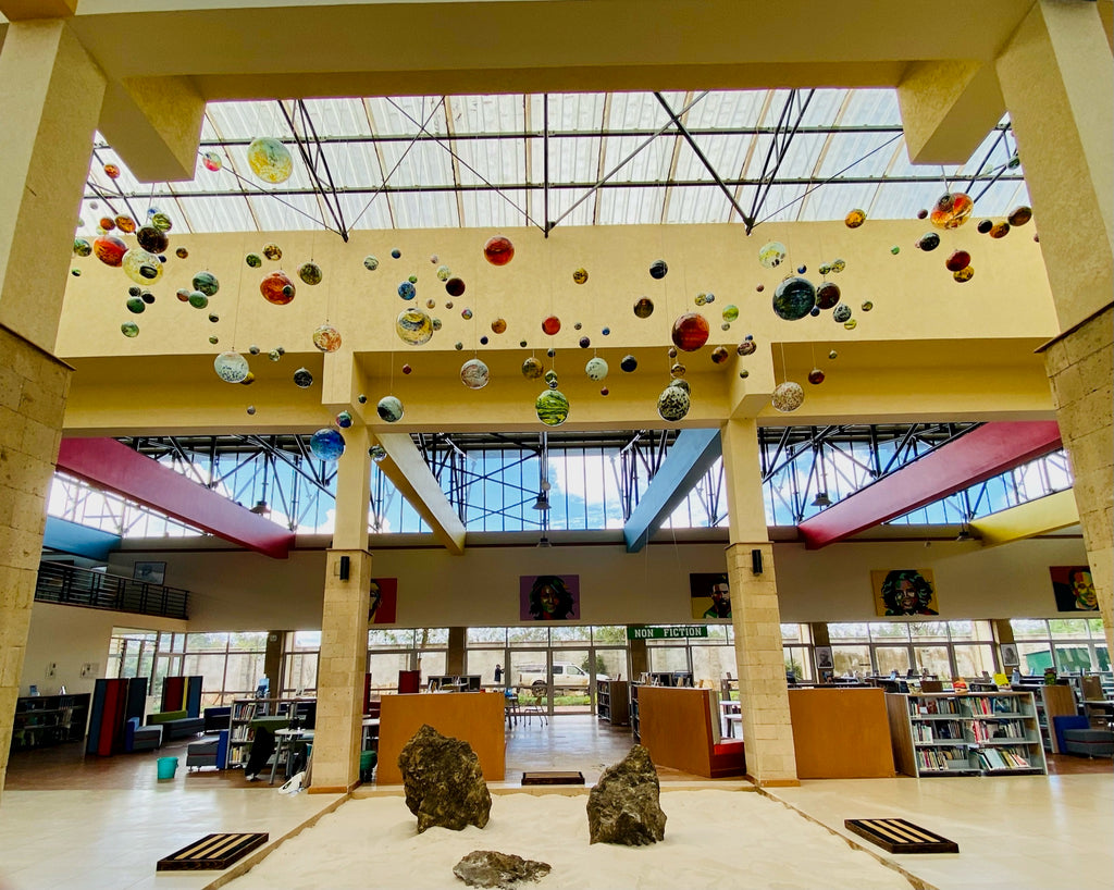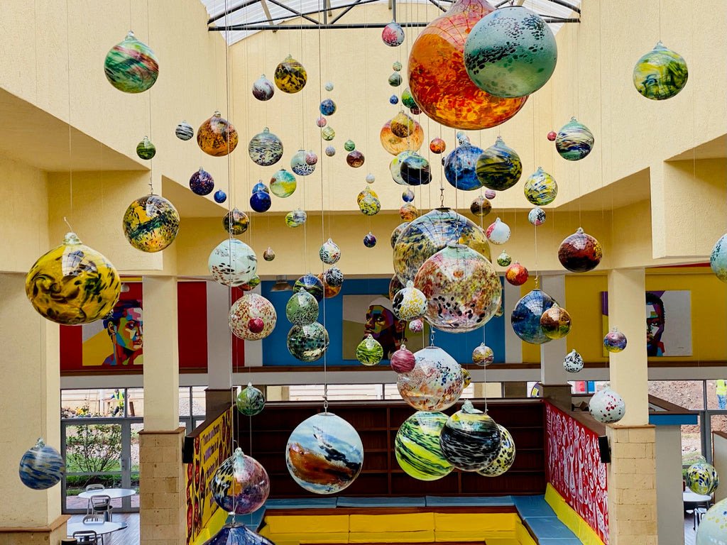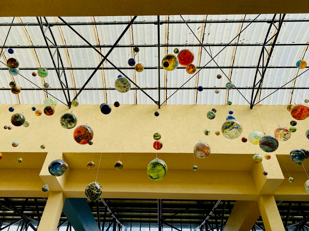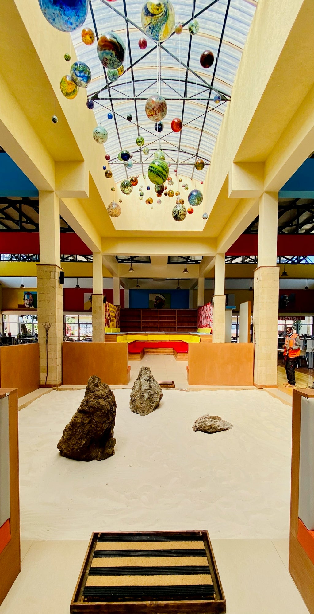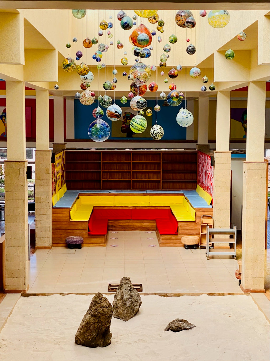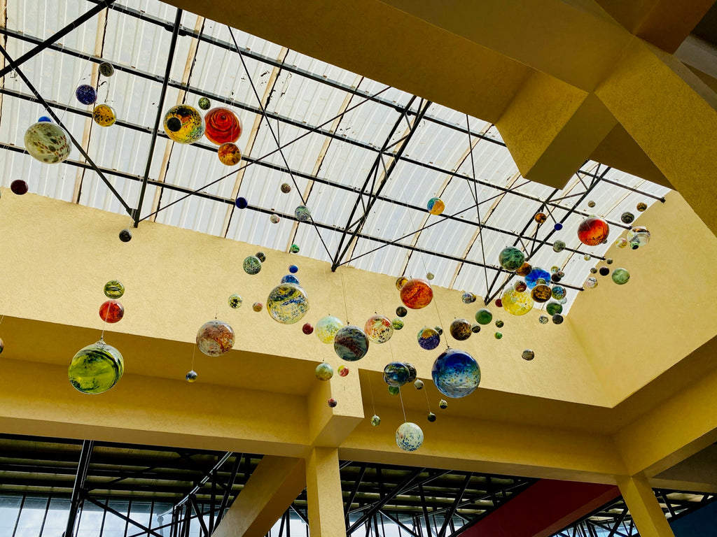 180 planets for the mPesa Foundation Academy forming a galaxy for their resource centre, to hang above a zen garden we also made - for students to step out of the data stream, take a minute to feel the sand between their toes and be in the moment.