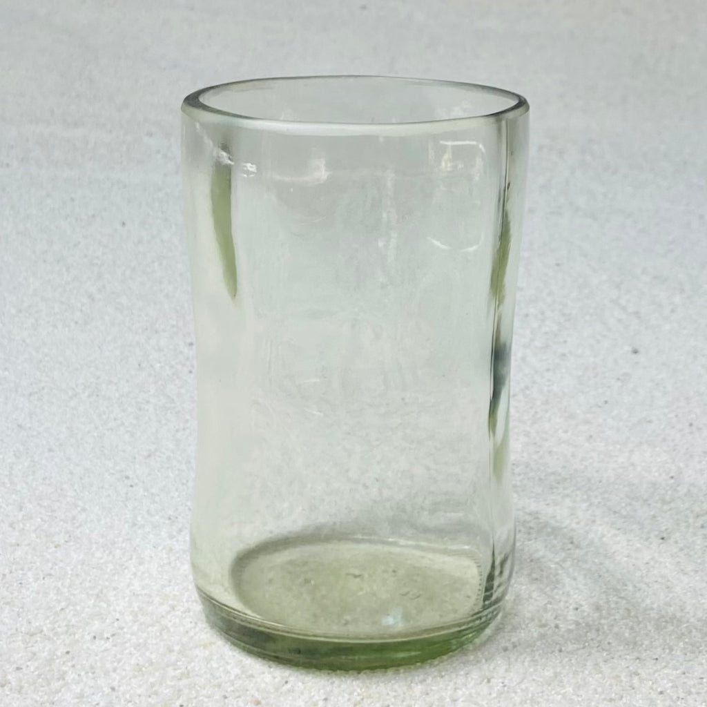 A multifunctional tumbler, cut from an old wine bottle with a lovingly polished edge. 12cm high, 7.5cm diameter. No hot liquids please - hand wash only.