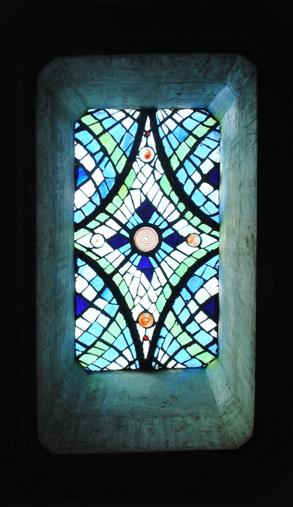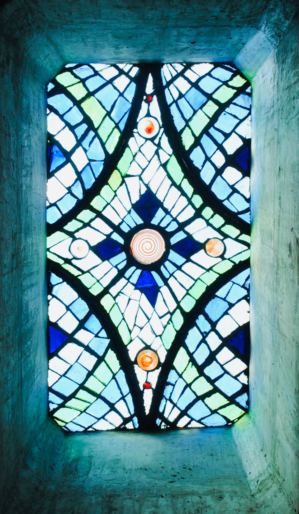 A French technique using thick cast blocks of glass in a cement & steel matrix. Dalle de Verre is used by Kitengela Hot Glass to create tough, vibrant window panels & furniture