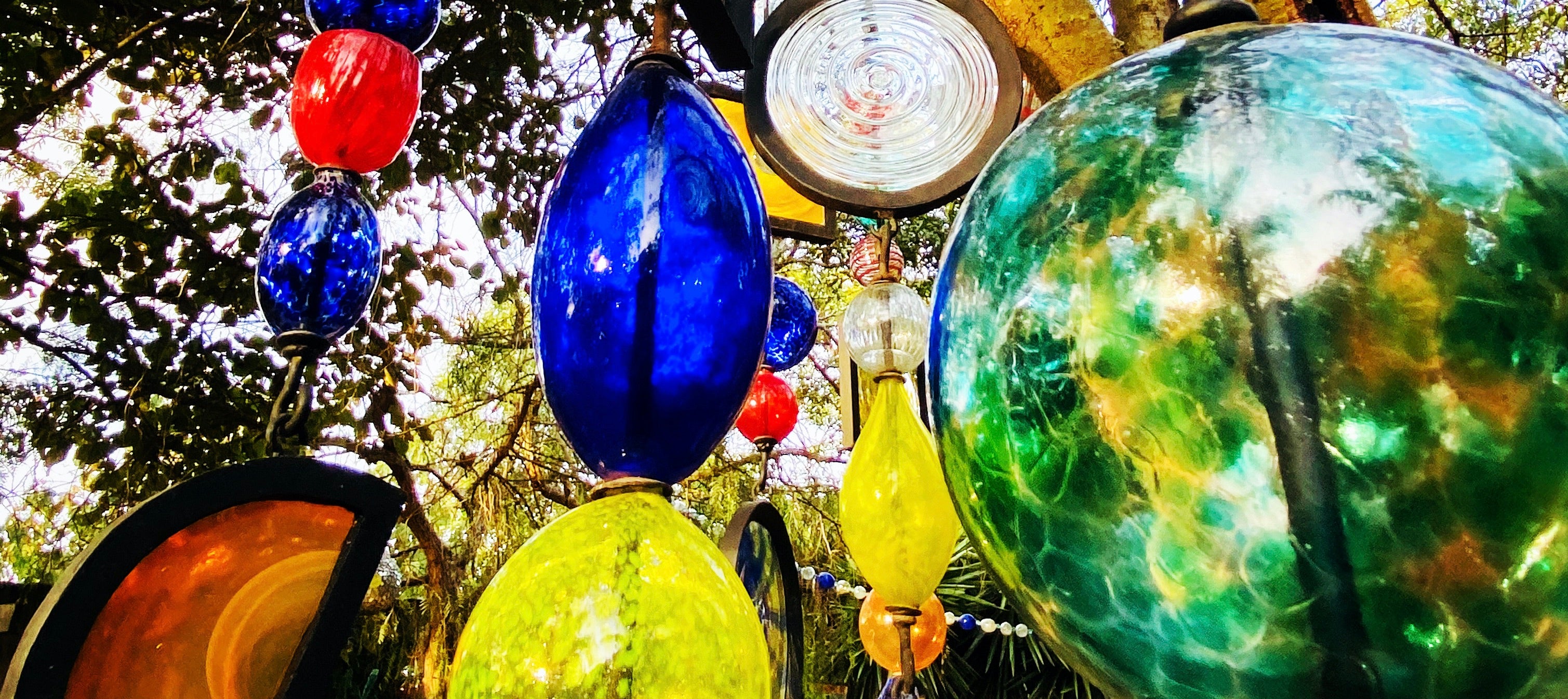 The now iconic 'garden jewellery' adorns discerning houses & gardens around the globe - bursts of coloured glass catching sunlight and giving glassy joy to many people. Works a bit like Lego - mix and match whatever combinations you want - up to 7 metres long.