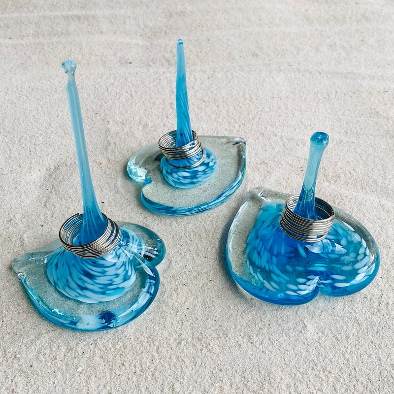 Large pale turquoise white frit ring holder
